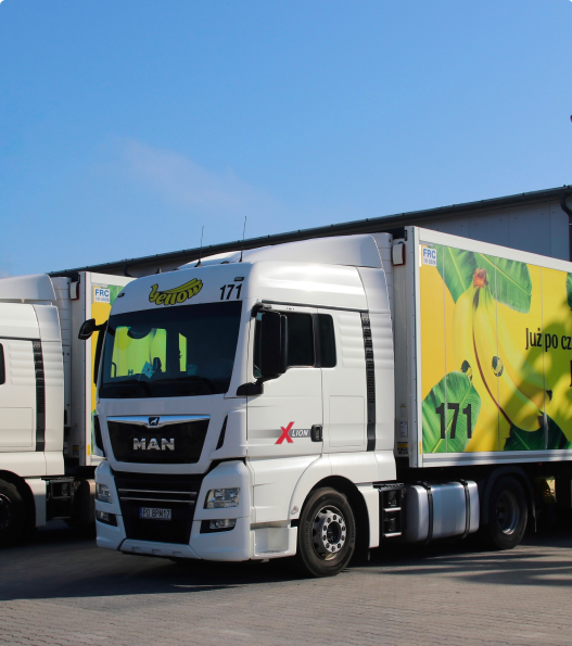 Flota proprie de 300 de camioane moderne, conforme cu standardul EURO 6, ne permite să livrăm bananele proaspete „Yellow” către centrele de distribuție din 12 țări europene. Personalul specializat care lucrează în birouri din Polonia, România și Ungaria asigură livrări la timp și servicii de cea mai bună calitate.